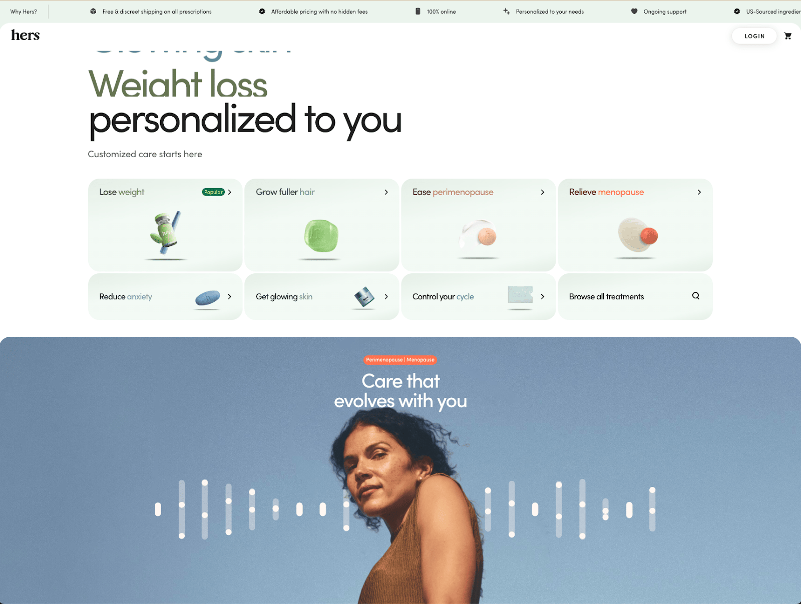If you look at hims.com and forhers.com, the team’s done an incredible job of creating a template + site UX that’s an incredible experience for both brands.