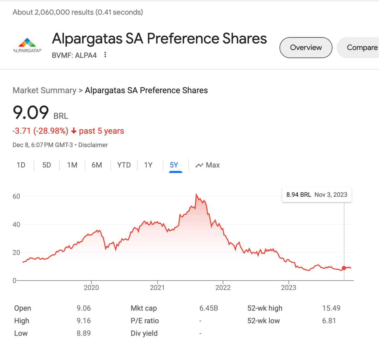 Link to Alpargatas Stock Price. (All data converted BRL → USD)