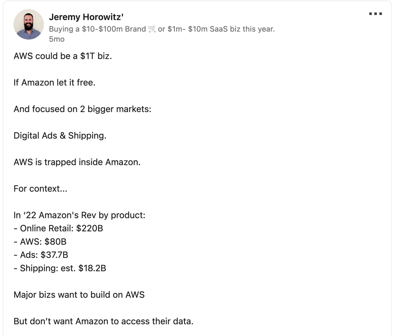 Really, I believe Amazon should divest AWS and make it a standalone biz.