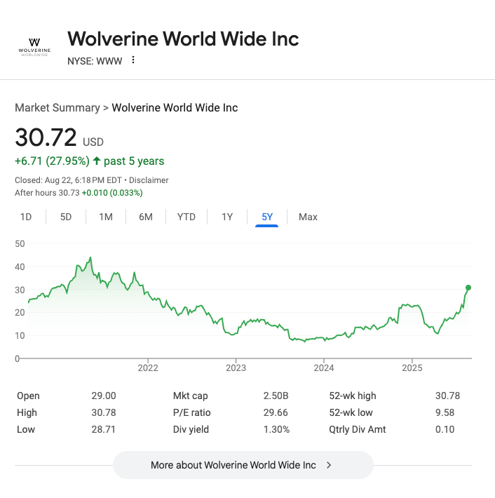 If Wolverine thought about how they were structuring their brands (what brands lived under what legal entities), thereās an obvious insight that they could have capitalized on.